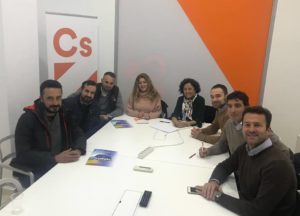 El portavoz municipal de Ciudadanos (Cs) Jerez, Carlos Pérez, junto al coordinador de la agrupación, Jesús García, y miembros de la junta, Esther Mariscal y Montserrat Hoces, se han reunido con los portavoces de Jusapol, Oscar Troya, Patricio Moreno y Miguel López, con la intención de conocer de primera mano cuáles son sus principales reivindicaciones.